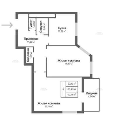 Площадь, кв.м.62.76