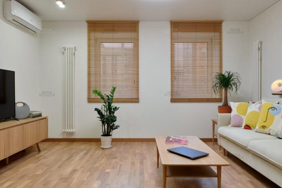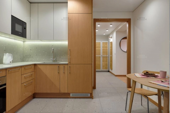 Продается двухкомнатная квартира с индивидуальным отоплением, площадью 62,8 кв. м. на 1-м этаже кирпичного дома 2021 г. постройки в ЖК Кречетников парк. * Полностью подготовленная для проживания квартира с новой мебелью и продуманными деталями интерьера в стиле mid-century, в которой остается все, кроме искусства и личных вещей. Вам останется только заказать продукты. * Строительные и отделочные работы выполнены профессиональной бригадой по авторскому проекту интерьера и инженерных сетей, который создавался исключительно для своей семьи. * В ХОДЕ ОТДЕЛОЧНЫХ РАБОТ Переустановлены окна от застройщика; Демонтированы стяжка пола, штукатурка и пороги; Создана новая конструкция пола (выравнивающая стяжка, утеплитель, финишная стяжка); Возведены новые стены из блоков увеличенной толщины; Армированы пороги; Стены комнат и лоджии подготовлены для покраски и поклейки обоев: 4 слоя шпаклевки через стеклохолст, грунтовка, шлифовка "под лампочку", окраска в 3 слоя; * ИНЖ. СИСТЕМЫ И КОМФОРТ В конструкции пола и стен: контуры водяного теплого пола, магистрали систем кондиционирования, сети радиаторного отопления и водопровода; Коллекторные узлы (Stout/FAR); Магистральный фильтр Барьер и система защиты от протечек Нептун; Канализационные трубы с шумопоглощением; Радиаторы Arbonia; Инверторные сплит-системы Hisense. * ЭЛЕКТРИКА И ОСВЕЩЕНИЕ Потолочная разводка, интегрированный в стену электрощит с автоматикой ABB; 56 розеток и 19 выключателей Schneider Electric, с управлением светом из любой точки помещения; Осветительные приборы с LED лампами 9 Вт 4000K; Потолочные конструкции Fran Studio; 4 точки LAN, Wi-Fi роутер, Макснет 450 Мбит/с. * ОКНА И ДВЕРИ На кухне демонтирован высокий порог и подоконный блок, установлены распашные двери Rehau без центральной стойки; Откосы окон и дверей 90, высота дверных полотен 2,2 м; Горизонтальные жалюзи из бамбука; Входная дверь Torex Super Omega Pro, межкомнатные Porta Prima (шпоном миланского ореха). * ОТДЕЛОЧНЫЕ МАТЕРИАЛЫ Напольные покрытия: керамогранит Arcana, паркетная доска Polarwood; Отделка стен - краска Flugger, обои Andrea Rossi, керамическая плитка Dual Gres; Подоконники и пороги - массива дуба 40 мм под маслом Osmo. * С/У И ВАННАЯ Инсталляция TECE, сантехника и мебель Ceramicanova, Am.Pm; Ванна из литьевого мрамора Astra-Form; Смесители, душевая система, гиг. душ и аксессуары Hansgrohe; Полотенцесушитель скрытого монтажа IQWatt (теплая стена); Узкая стиральная машина Haier. * ОСНАЩЕНИЕ КУХНИ Гарнитур (Пастернак) - шпона дуба/матовая эмаль; Столешница 20 мм - кварцевый агломерат TechniStone (Чехия); Смеситель Roca (Испания), система фильтрации питьевой воды "Барьер"; Бытовая техника Bosch Serie 6; Холодильник Smeg; Газовый котел Ariston. * Мебель, столярка (массив/шпон) - La Redoute, IKEA, фабрики Калуги, Москвы, Уфы, СПб и Беларуси. * ПЛОЩАДИ Гостиная 20; Спальня 15; Кухня 11,8; Лоджия 6. * Один собственник, без обременений.