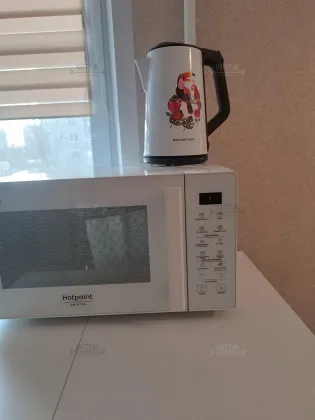 . Окна ПВХ, балкон, холодно-горячая вода. На кухне холодильник, морозильная камера, микроволновка, новые стол-книжка, обеденный стол. Есть вся нужная посуда, новые свежие обеденные принадлежности, , стиральная машинка.