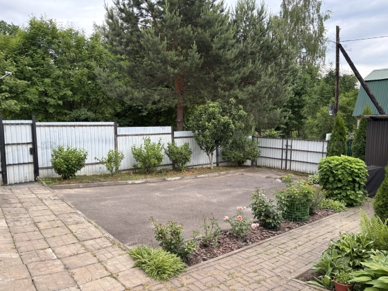 Асфальтированная парковочная площадка с воротами (встают 4 машины).