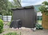 - Вместительная кладовка со стеллажами и полками для хранения различного садового инвентаря.