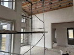 Выполнена черновая внутренняя отделка. Возведены все межкомнатные перегородки. Стены оштукатурены методом механизированной штукатурки.
