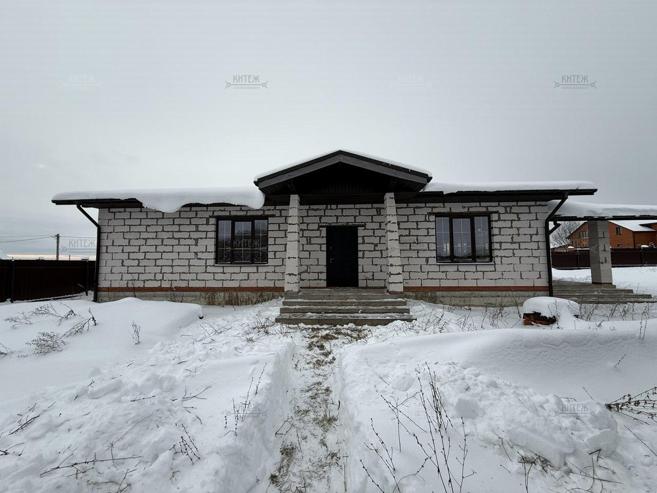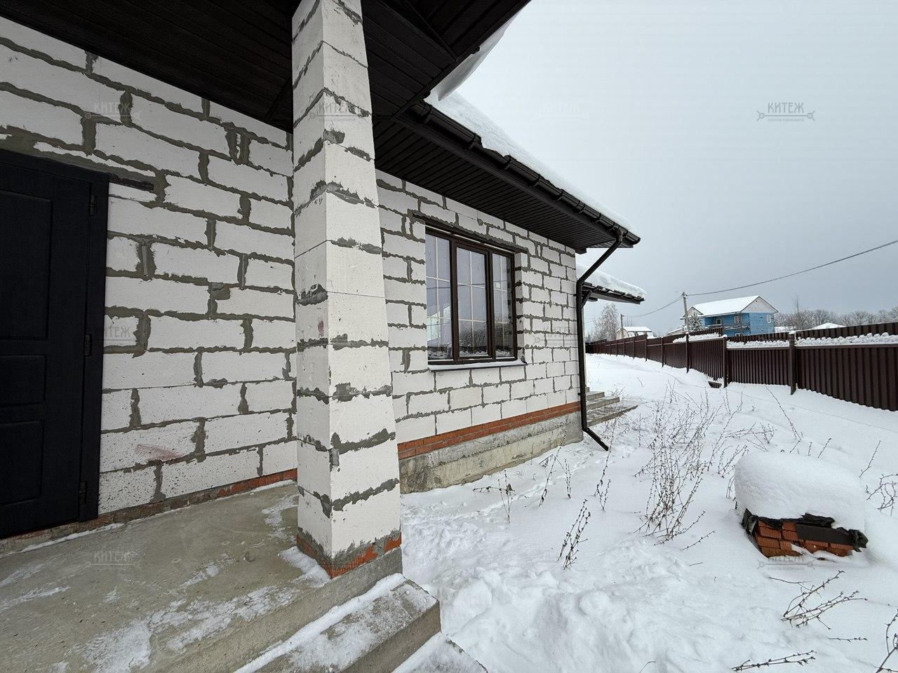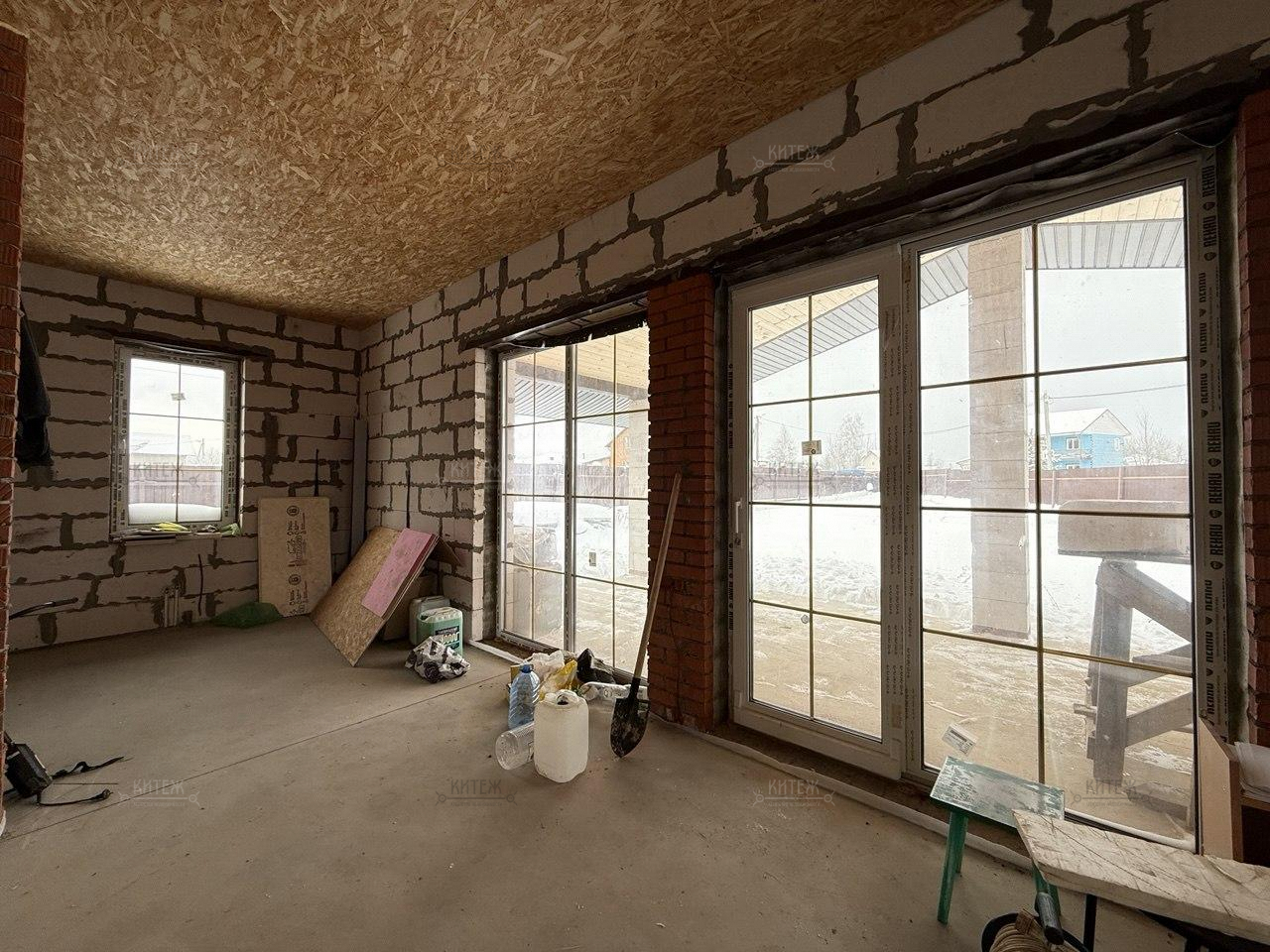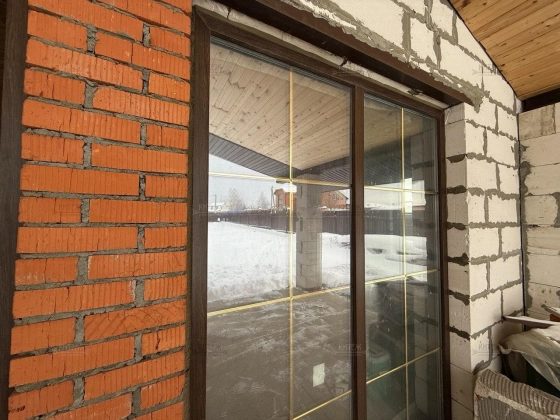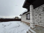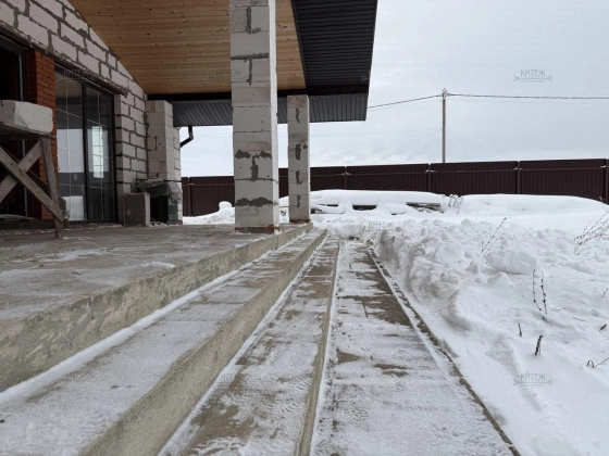 Фундамент - монолитная плита, материал наружних стен - газобетонный блок 400мм. Крыша подшита, оборудована водосточной системой. Проведено отопление, утановлены батареи, сделана разводка электрики.