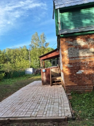 Первый этаж кирпичный, второй деревянный. В дом заведен газ. Газ подключён к плите, и сделан отвод для котла. Самого котла нет.