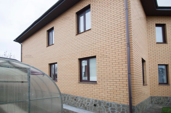 Дом 2-этажный 240 кв.м. 2017 года постройки. Второй этаж полноценный, не мансарда. Газоблок + облицовочный кирпич. Фундамент ленточный. Крыша - мягкая черепица.