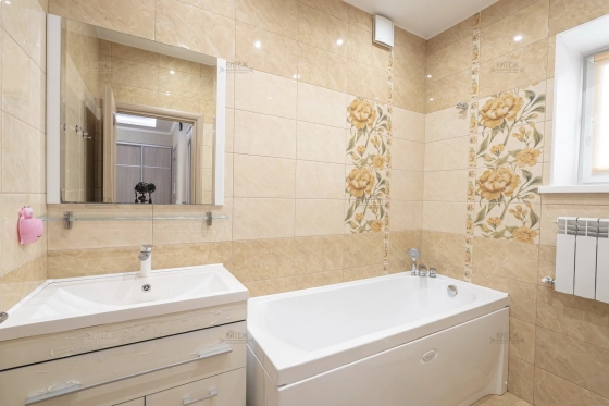 Состояние - идеальное! Абсолютно во всех помещениях сделан полный ремонт. Ничего не нужно доделывать или переделывать. В доме много света, тепла и уюта! Со вкусом подобраны цвета, материалы и мебель. Установлена дубовая лестница. Сквозные выключатели освещения. Кухонный гарнитур со встроенной техникой, сантехника в санузлах, мебель - всё как новое.