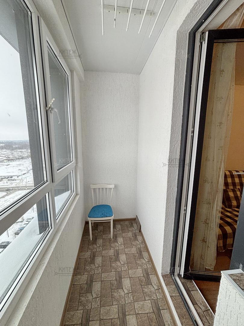 На 12 этаже сдаётся неугловая 1-комн. квартира 43 кв.м. с кухней-гостиной 18,3 кв.м. и комнатой 13,8 кв.м. Из комнаты выходит застеклённая лоджия с красивыми панорамными видами. Совмещённый санузел. Вместительная прихожая со встроенным гардеробным шкафом-купе.