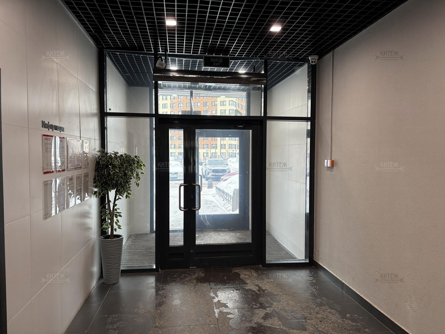 В доме сквозной подъезд со стеклянными входами на уровне земли - с одной стороны выход во двор без машин, с другой - на парковочную зону. Парковка при этом впечатляет размерами и количеством машиномест.