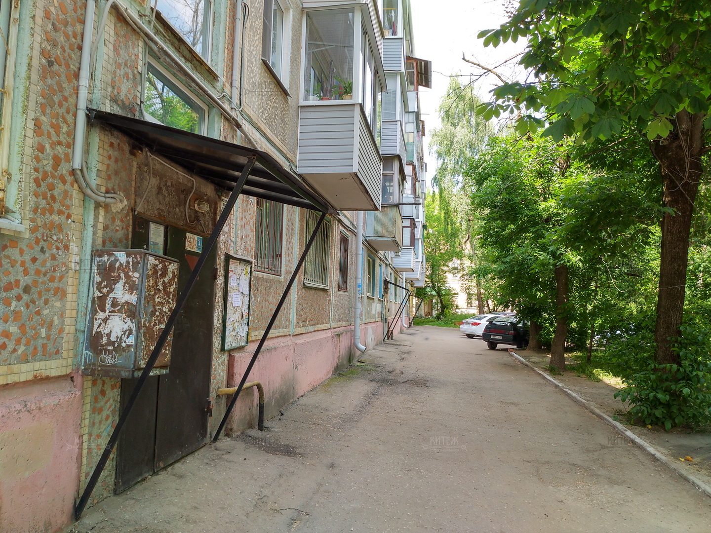 Район площади Победы, улица Николо-Козинская, дом 3 - 5-этажный панельный дом, окружённый зеленью, и расположенный в самом центре города.