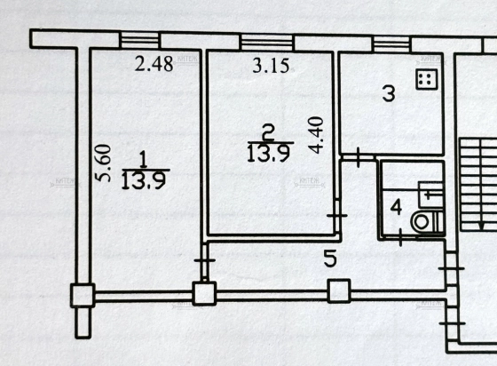 2-к. 45,4 м2, 1/5 эт. Николо-Коз.