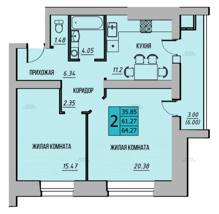 Площадь, кв.м.64.27