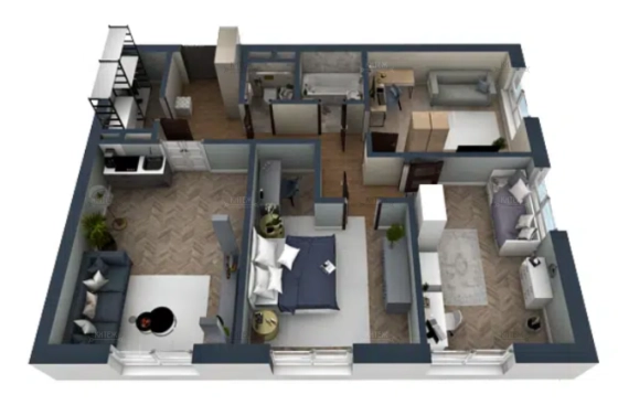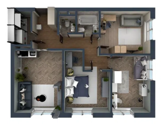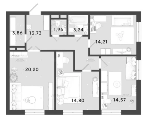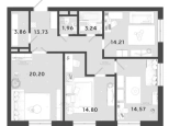 В продаже 3-комн. квартира 86,6 кв.м. с кухней-гостиной 20,2 кв.м. и изолированными комнатами 14,8 + 16,6 + 14,2 кв.м. Два санузла. Отдельная гардеробная в прихожей. Сама прихожая вместительная и функциональная.