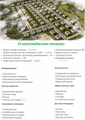 Каждый участок обеспечен всеми центральными коммуникациями и ливневой канализацией, есть спутниковый интернет.