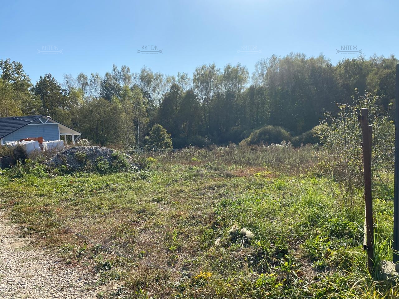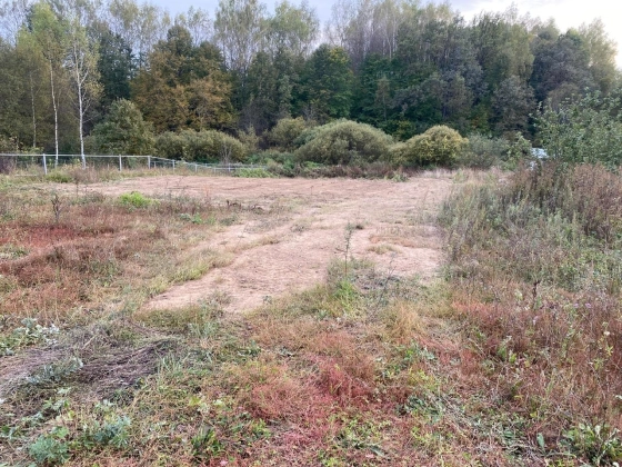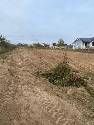 Участок на возвышенности, прямоугольной формы с небольшим уклоном, выровнен, засыпан плодородной землей. Находится на краю деревни, тихое место с выходом к небольшому ручью и лесу.
