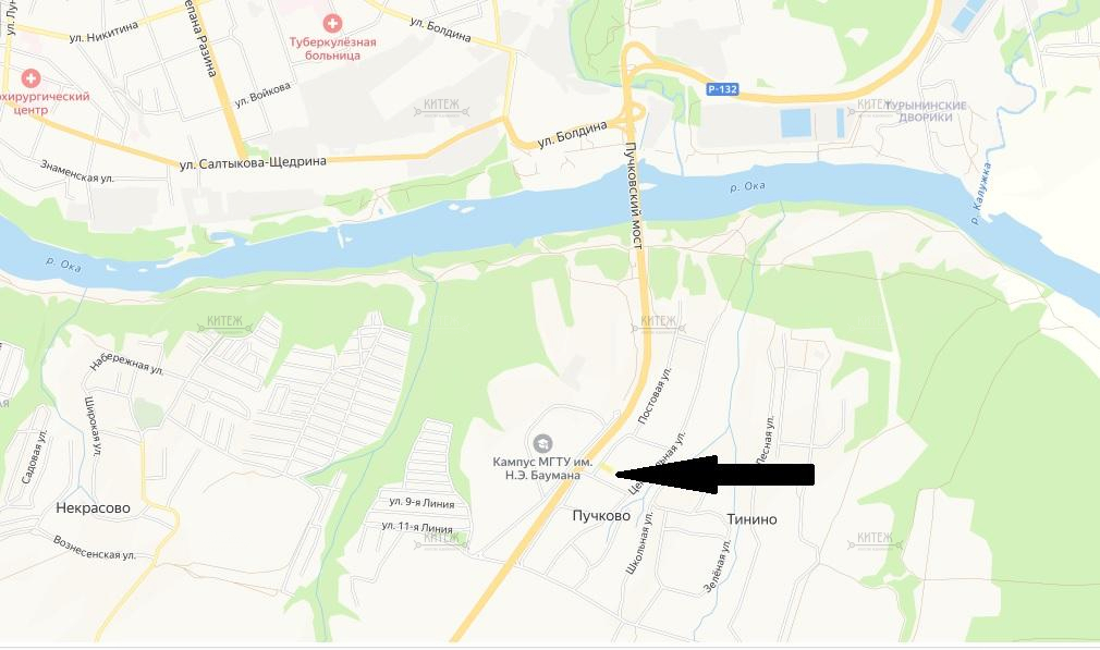При этом до центра Калуги на личном автомобиле (улиц Kирова, Лeнина,Мoсковскaя) 13 минут. В 10 минутах езды находится магазин Метро, спортивная и теннисная арены "Калужники". Через дорогу от участка располагается кампус Бауманского университета.