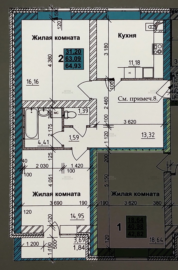 | 8 | 2 | 64.93 31.2 11.2 | 2 | 7 142 300 | 110 000 руб./м2 | ||