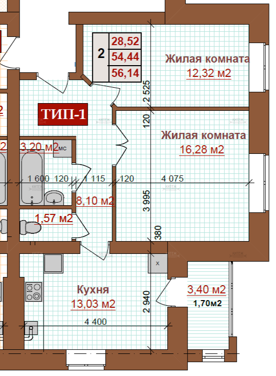 2-комн. квартира 57,1 кв.м. в новом доме с индивидуальным отоплением на Правом Берегу. Правый ...