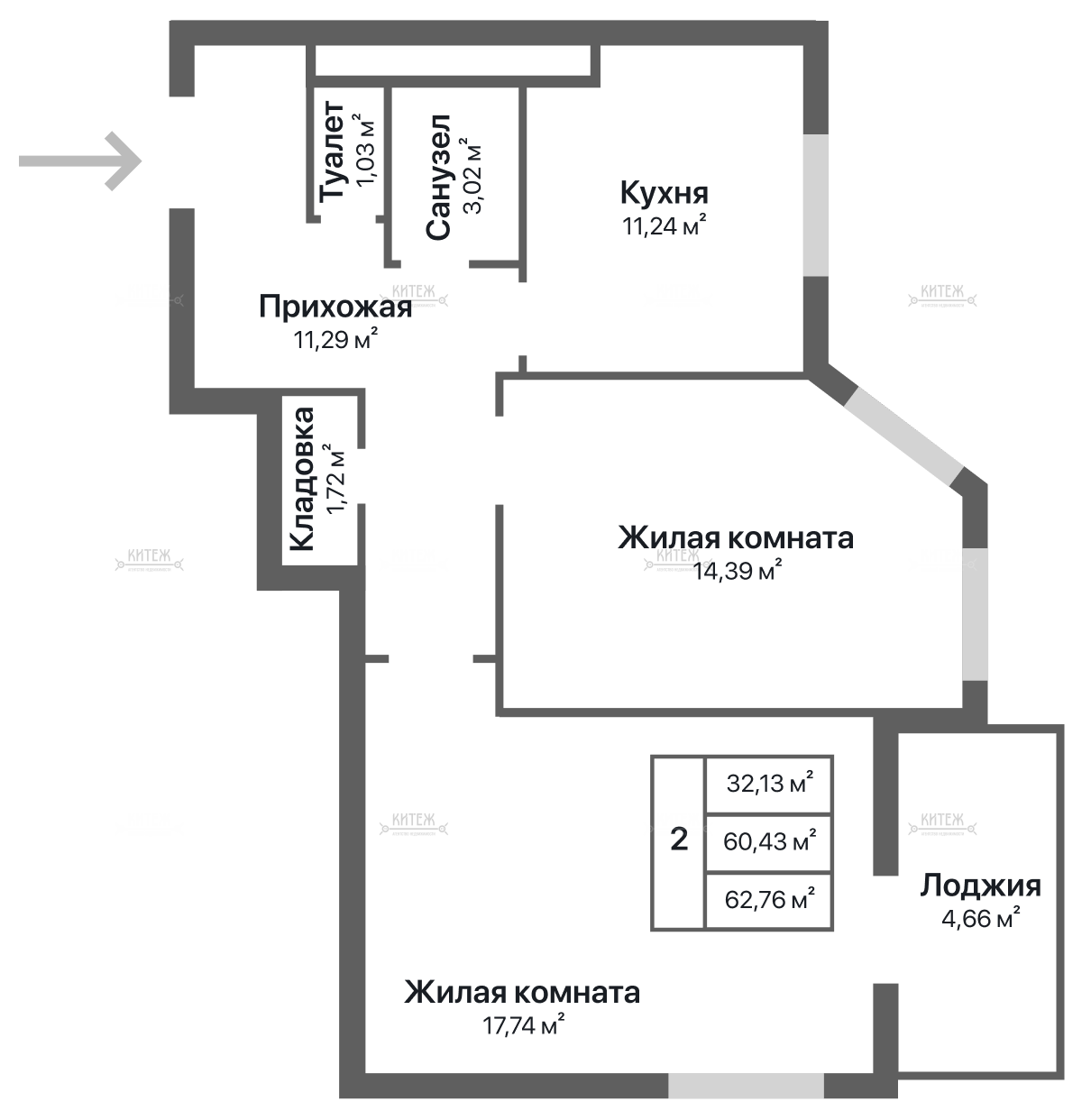 В доме предусмотрены 1 и 2-комнатные квартиры.